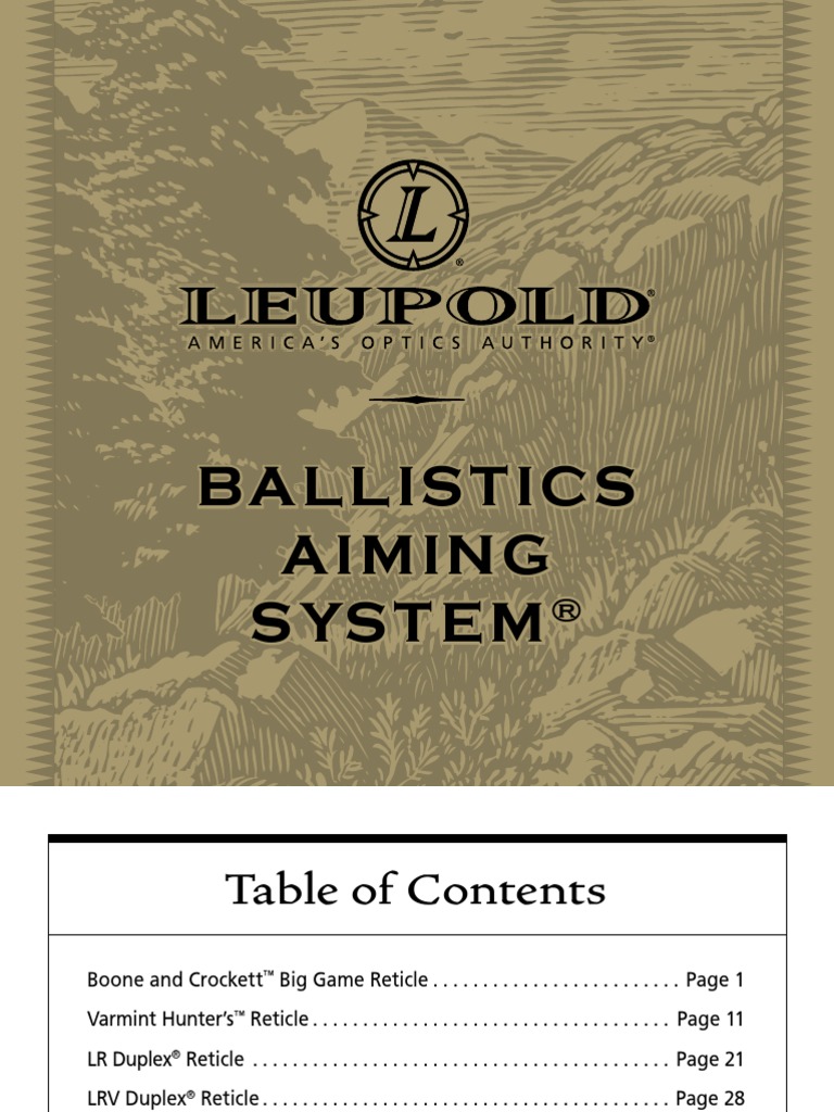 CDS BALLISTIC DIALS. Leupolds Ballistics Aiming System is comprised of five specialized reticles Boone and Crockett Big Game Varmint Hunters LR Duplex LRV Duplex and the new SABR. It was with this in mind that Leupold created the Leupold Ballistics Aiming System. Leupold ballistic aiming system. Used with care and responsibility it can increase your personal maximum point blank range by about 25 with precision as long as you do your homework. The Ballistic Aiming System is not difficult to use but the easy tutorial on the CD takes all the guesswork out. By practicing with the Ballistics Aiming System you will be able to consistently make shots you would not have been able to otherwise.